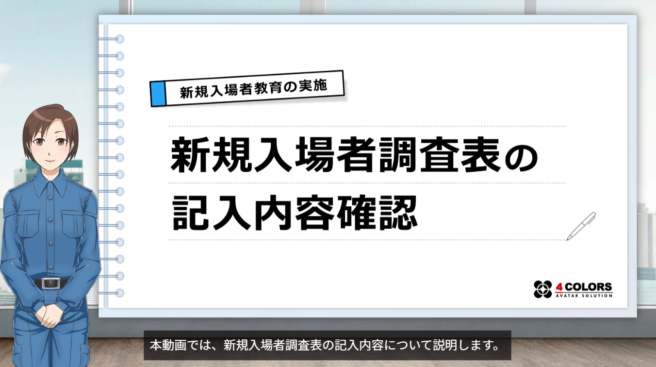 新規入場者教育を動画に置き換え、説明の手間を削減。